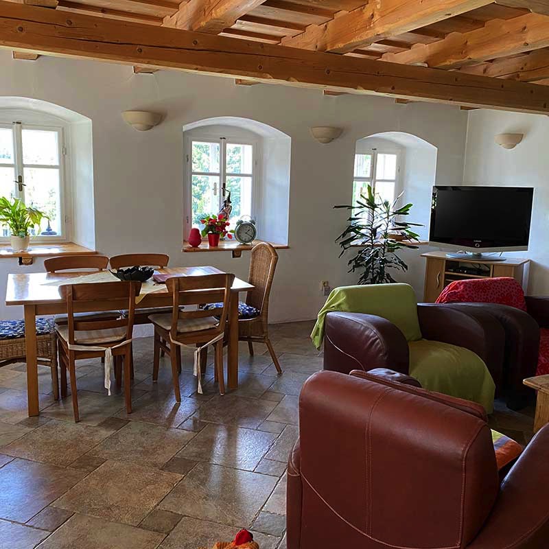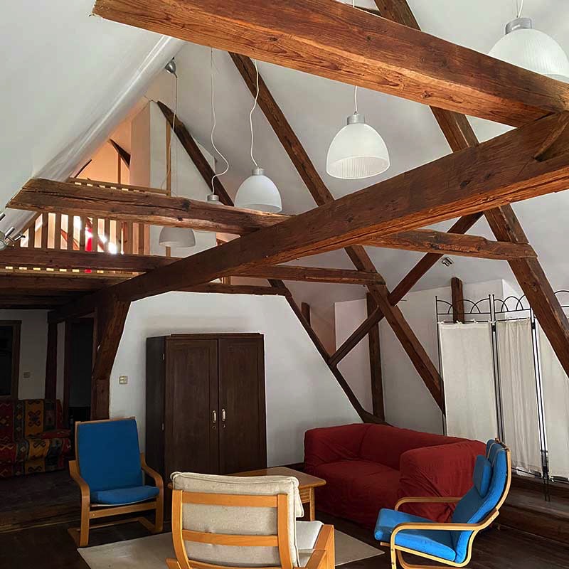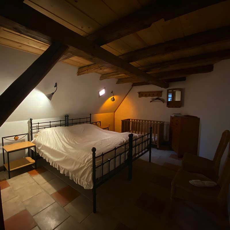 Aangrenzend aan deze bovenetage is een aparte toegang naar het andere (later aangebouwde) deel van de boerderij waar de nooduitgang is. In dit deel bevindt zich een pension/b&b met separaat te huren slaapkamers, eigen entree en een gedeelde badkamer/toiletruimte.
